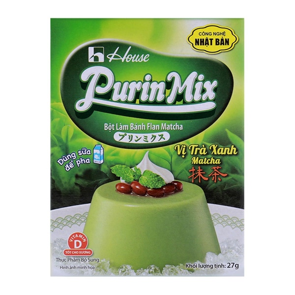 Bột làm bánh flan vị trà xanh Purin Mix được làm từ các nguyên liệu tự nhiên gồm đường sucrose, gelatin, chất màu tự nhiên, chất tạo đặc... và đặc biệt không chất bảo quản độc hại, an toàn cho người tiêu dùng. Sản phẩm là sự kết hợp độc đáo giữa công thức truyền thống và quy trình chế biến hiện đại mang lại cho bạn món bánh flan thơm ngon và bổ dưỡng. Hương vị trà xanh thơm lừng giúp tăng khẩu vị cho món tráng miệng. Sản phẩm được đóng hộp kín đáo, dễ bảo quản và giữ được nguyên chất lượng bên trong.